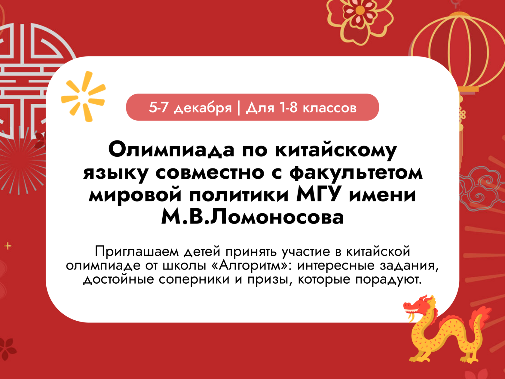 Олимпиада по китайскому языку для 1-8 классов!