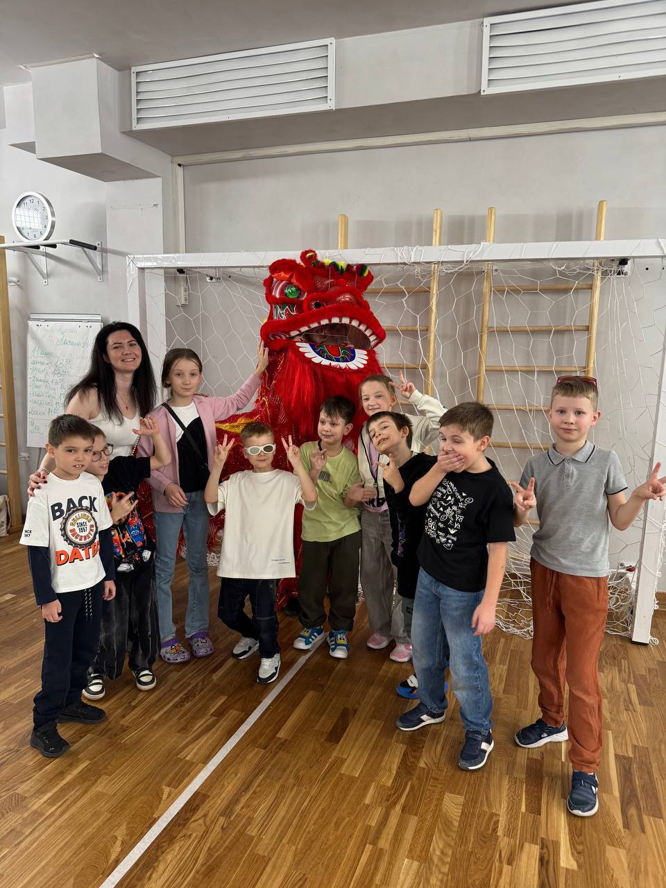 Дети прошли множество испытаний и заработали свои первые очки кун-фу! Кроме того, в школу пришел настоящий китайский лев, который станцевал для наших учеников и убедился, что у нас учатся самые умные и ловкие китаисты!
